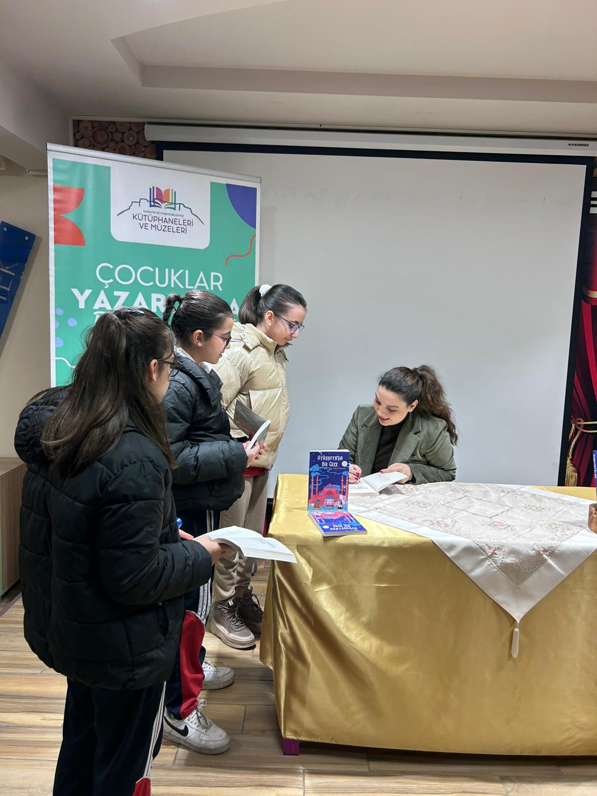 Dört farklı kütüphanede gerçekleştirilen söyleşide yazarın Ayasofya’da Bir Gece adlı kitabı üzerine sohbet edildi. Etkinlik sonunda yazar, kitaplarını imzalayarak öğrencilerle hatıra fotoğrafı çektirdi.
