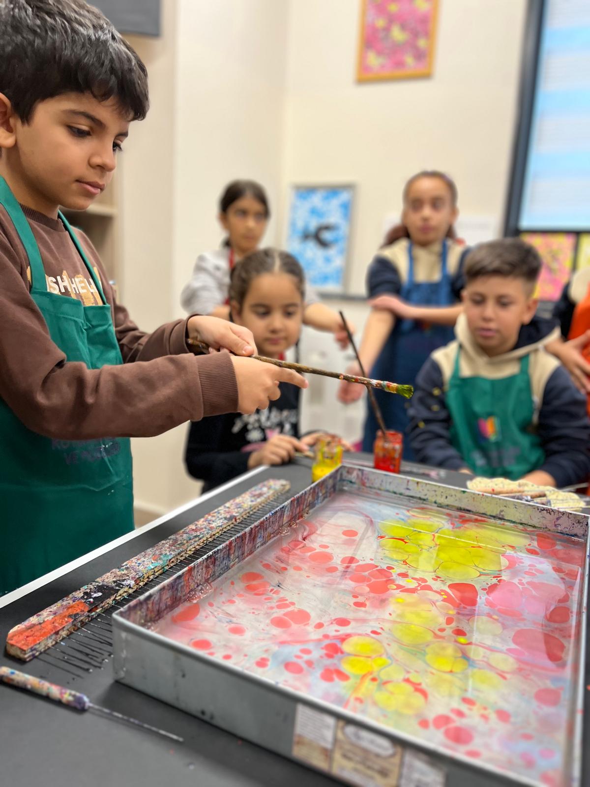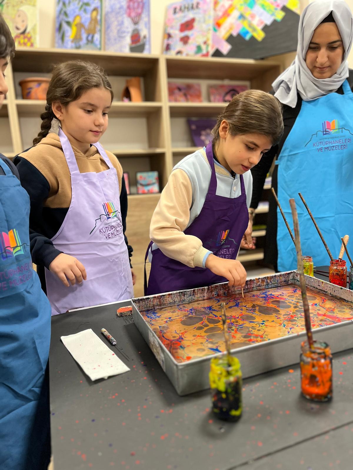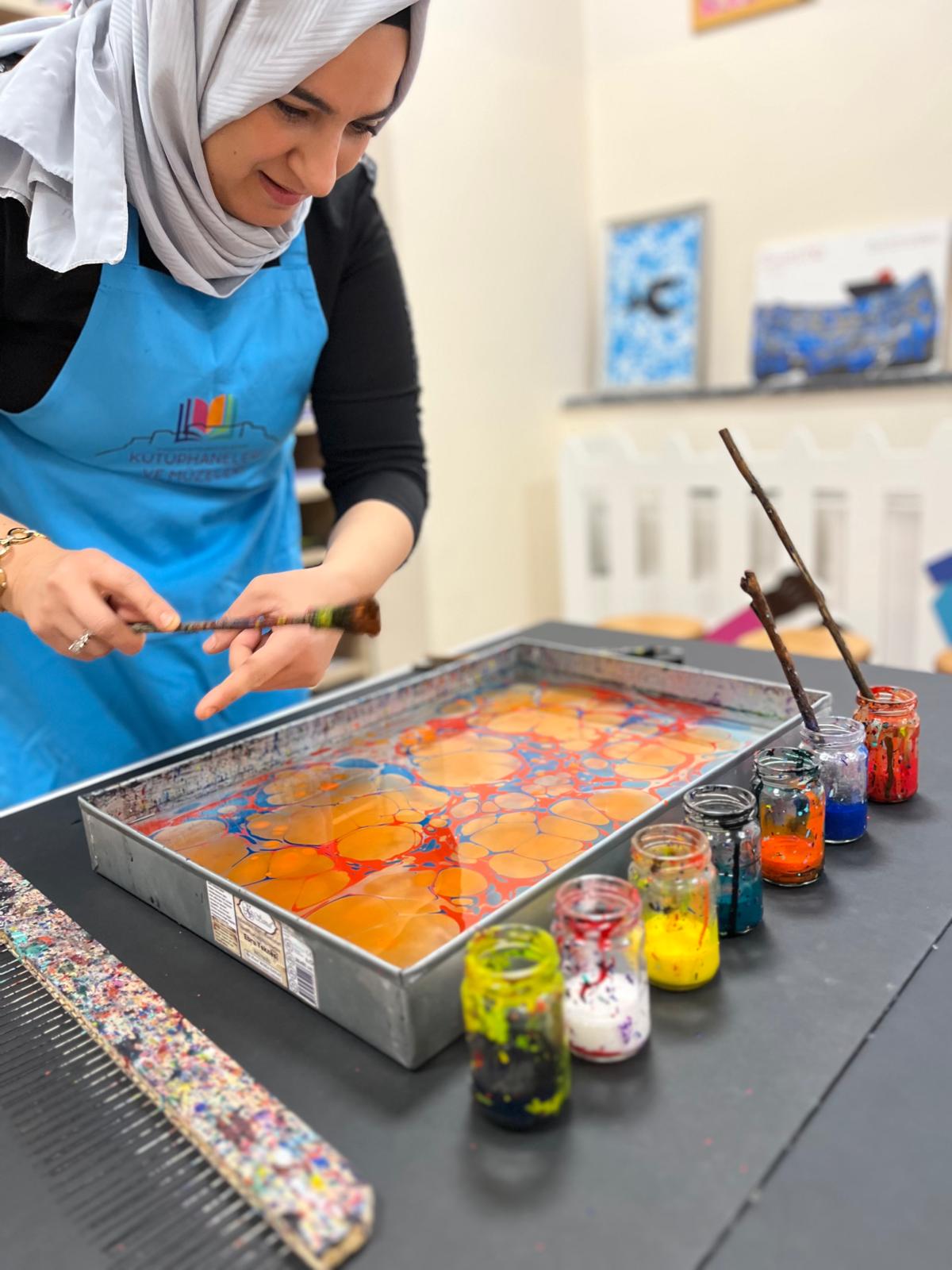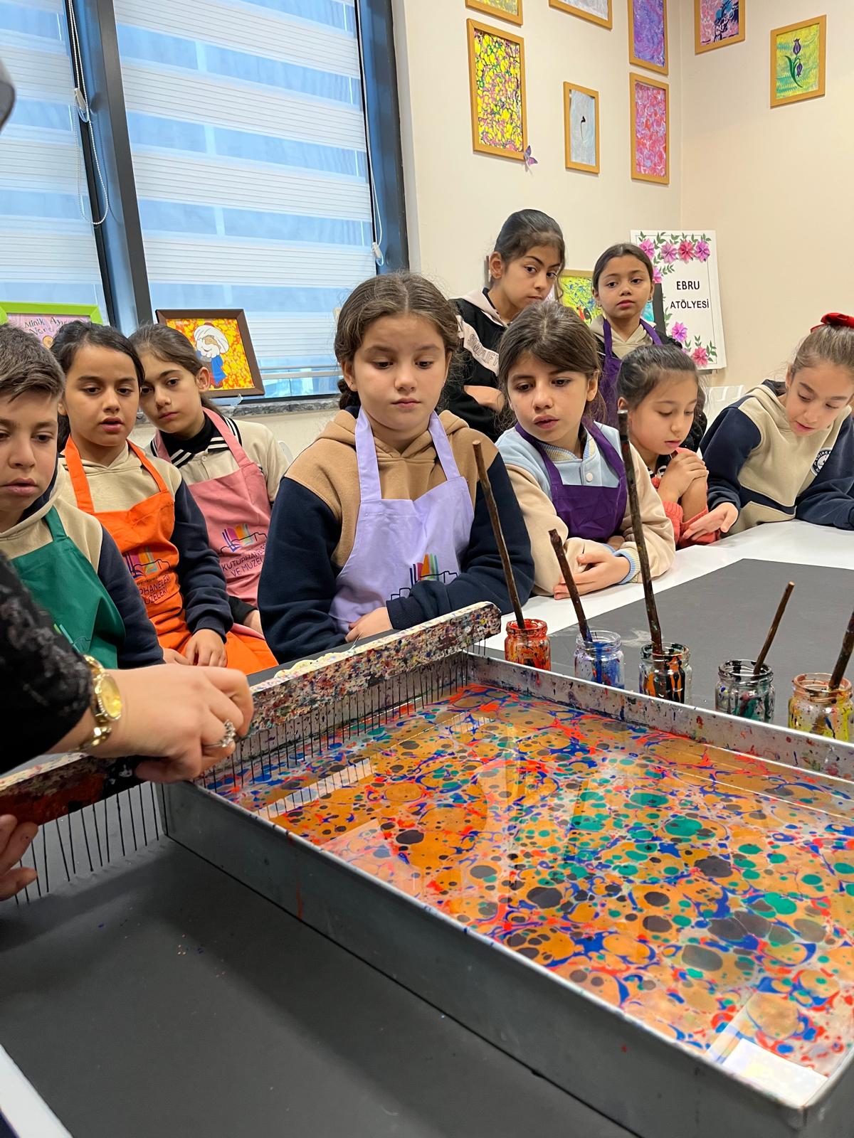 Çocuklar, suyun üzerinde oluşan renkli desenleri gözlemleyerek kendi ebru çalışmalarını yapma fırsatı buldu. Programda, ebru sanatının kültürel mirasımız açısından taşıdığı önem ve geleceğe aktarılmasının gerekliliği vurgulandı.