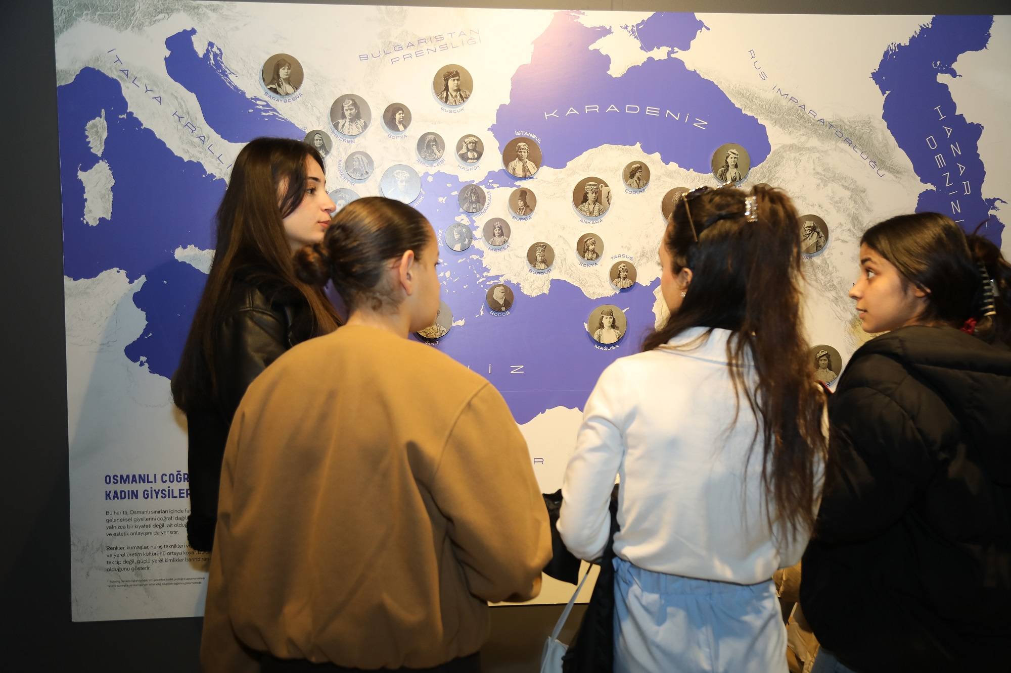 Sergide, Osmanlı coğrafyasının farklı bölgelerine ait kadın kıyafetleri, dönemin estetik anlayışını yansıtırken; öne çıkan kadın figürlerin biyografileri ve kronolojik anlatım alanları ziyaretçilere kapsamlı bir perspektif sunuyor.
