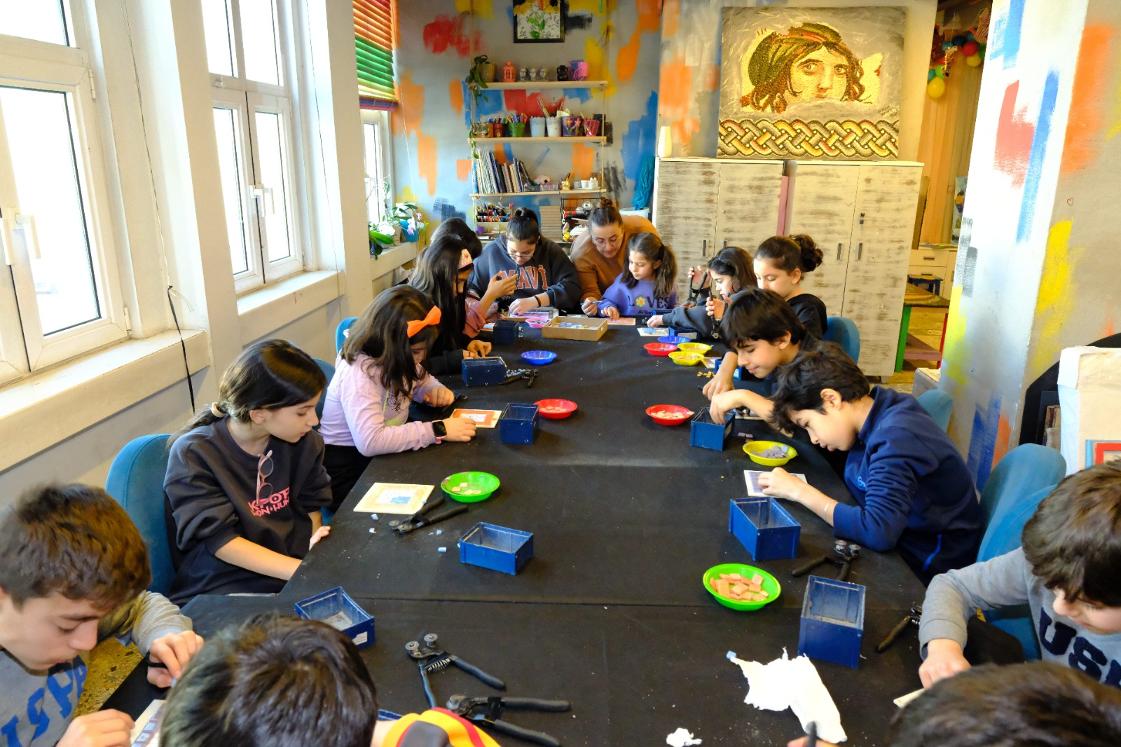 Çocuk Sanat Merkezi’nde; keman, bağlama, piyano, drama, el sanatları, seramik, mozaik, resim, cam sanatları ve masal olmak üzere 10 farklı branşta toplam 150 atölye düzenlenmiştir. Yarıyıl tatili süresince bireysel müzik kursları kesintisiz devam etmiş; Bilsem ve Güzel Sanatlar hazırlık kursları da sürdürülerek akademik ve sanatsal hedefleri olan öğrenciler için eğitimde süreklilik sağlanmıştır. Program yalnızca çocuklara değil, velilere yönelik içerikleriyle de öne çıkmıştır. Atölyelere katılan çocukların velilerine diyetisyenler tarafından sağlıklı ve dengeli beslenme konusunda bilgilendirme sunumları yapılmış; “kitap okuma” teması çerçevesinde aile içi okuma alışkanlıklarını destekleyici sohbetler düzenlenmiştir. Bekleme alanlarında küçük yaş gruplarına yönelik ek masal saatleri gerçekleştirilerek tüm aileler için verimli ve keyifli bir tatil ortamı oluşturulmuştur.