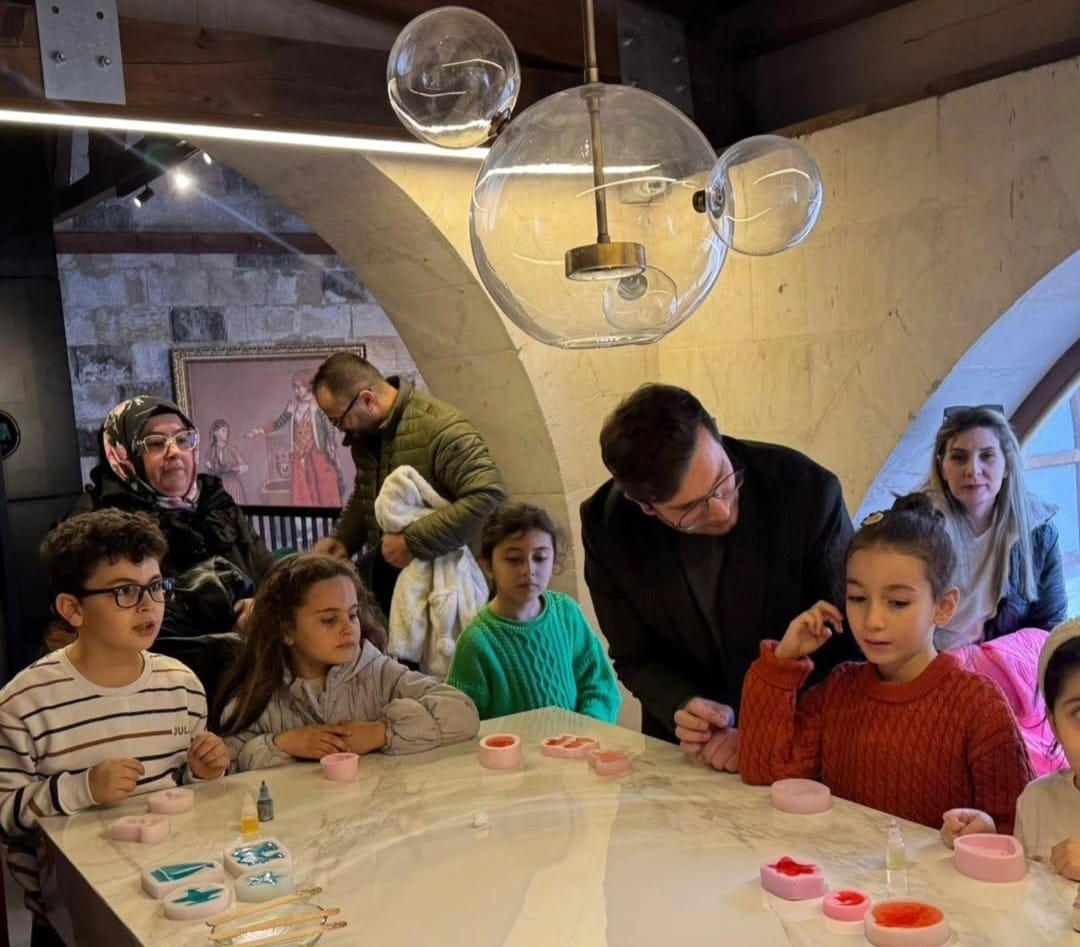 Gaziantep Kayna Sabun ve Pekmez Müzesi’nde gerçekleştirilen 2 atölye çalışmasında çocuklar, kentin geleneksel üretim kültürünü yakından tanıma fırsatı bulmuştur. Sabun yapım sürecini uygulamalı olarak deneyimleyen katılımcılar; üretim aşamalarını gözlemleyerek kültürel miras bilinci kazanmış ve yaşayarak öğrenme temelli bir eğitim sürecine dâhil olmuştur.